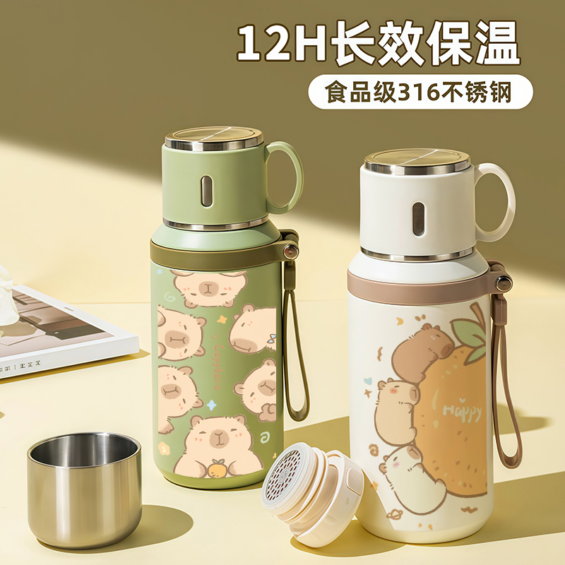 卡皮巴拉保温杯女生幼儿园周边水杯316内胆礼物可爱学生水豚杯子