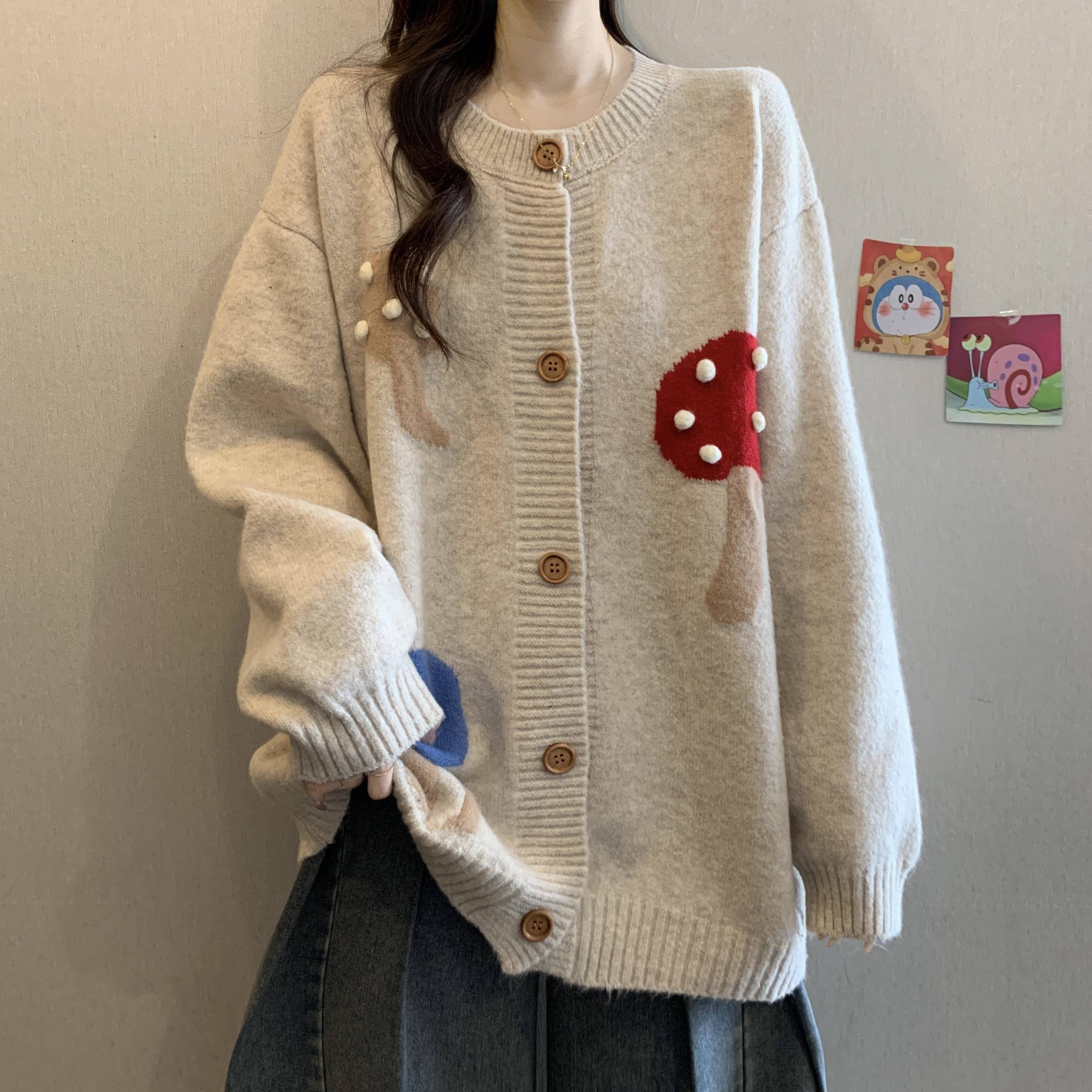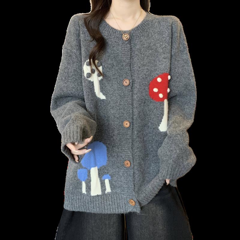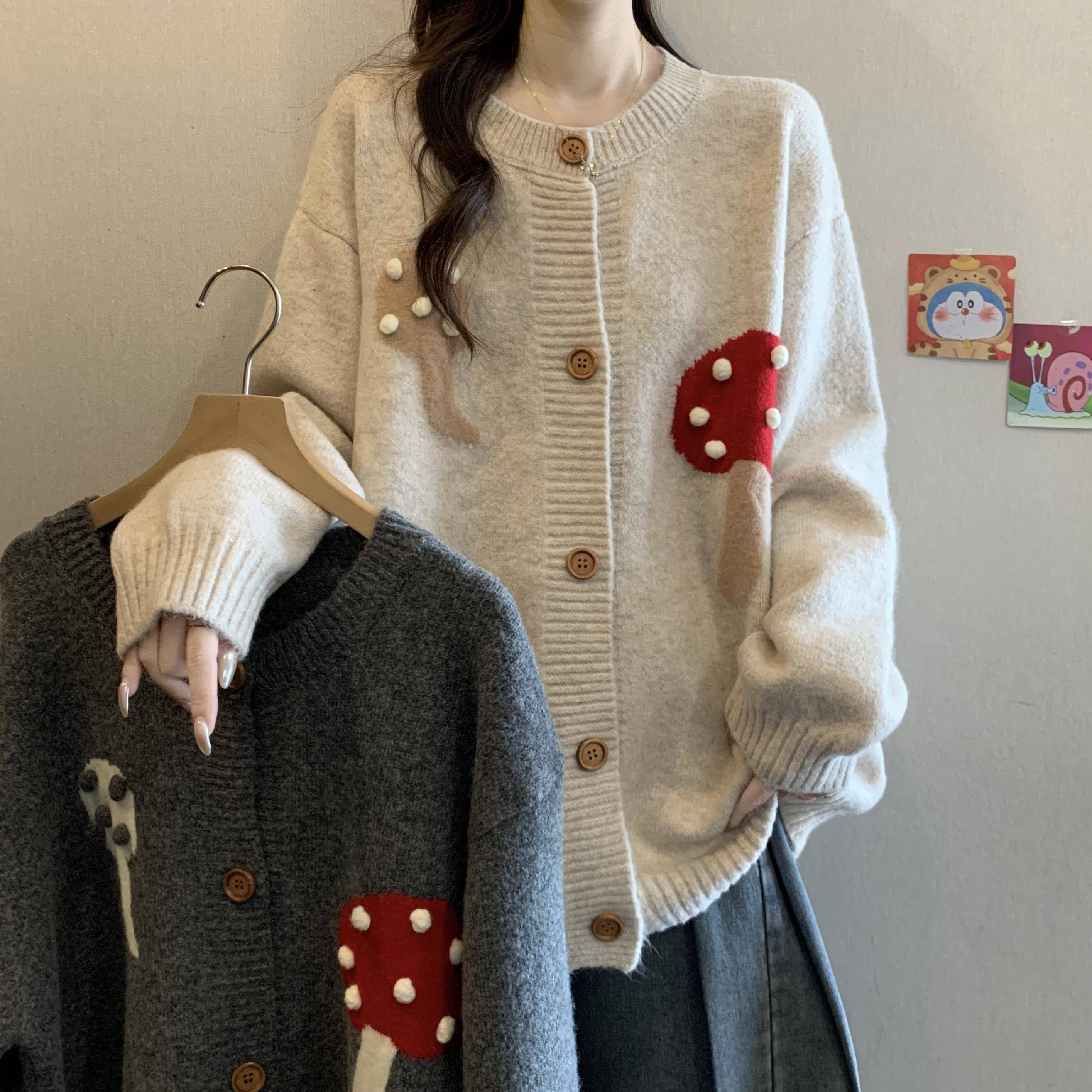 遮肚子圆领针织开衫 女装 胖mm宽松显瘦慵懒风毛衣外1019c 大码 冬季
