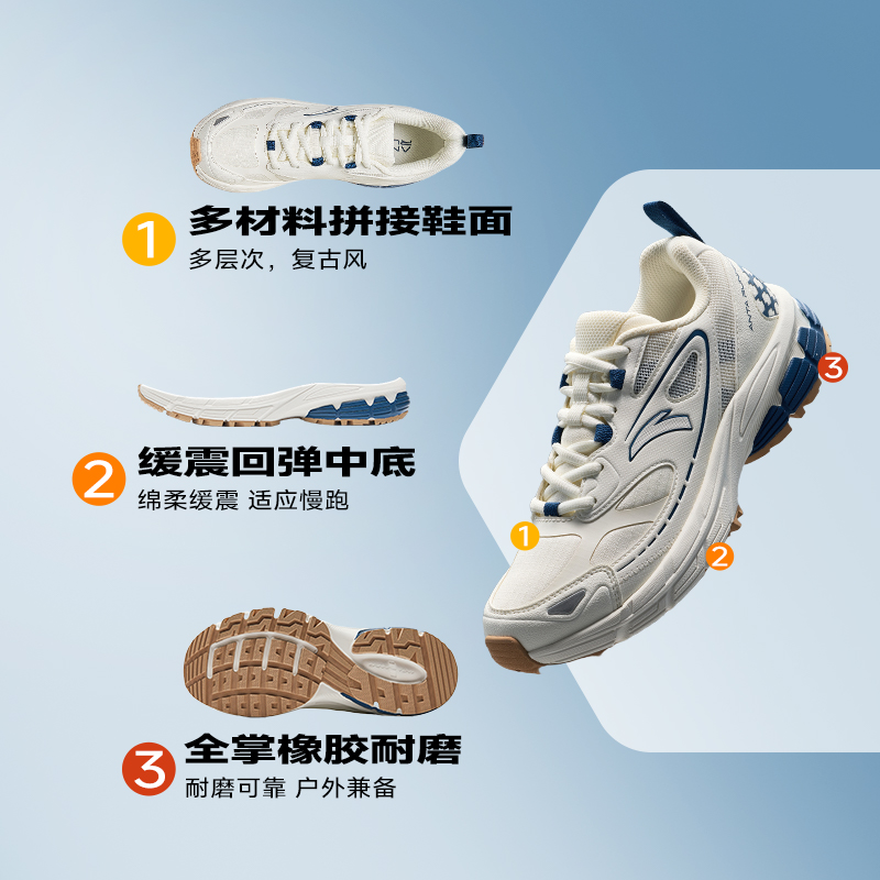 男2025秋潮流跑步鞋 安踏AT2007革网拼接复古休闲鞋 女 预售送定