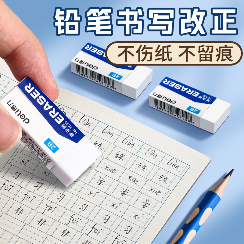 晨光2B橡皮擦少屑超干净小学生专用不易留痕幼儿园考试美术素描橡皮檫儿童无邻苯聚屑成条铅笔可擦橡皮文具