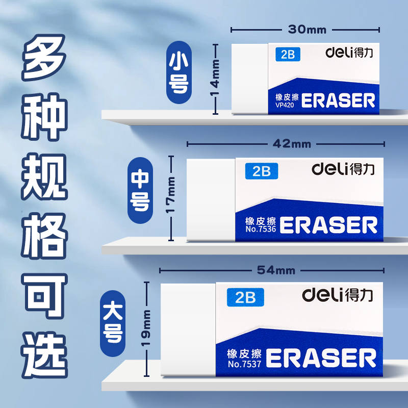 得力纽赛橡皮笔可擦橡皮无碎屑干净不留痕真集屑橡皮铅笔儿童橡皮防丢擦字成线素描美术生专用笔型橡皮擦