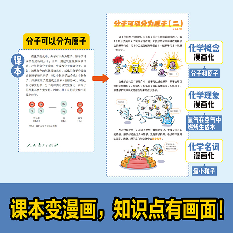 课本教辅七八九年级提前自学预习初中物理化学漫改教材 素周期表人教版 开心2026漫画趣味百科化学和物理必背知识点考点大全方程式 元