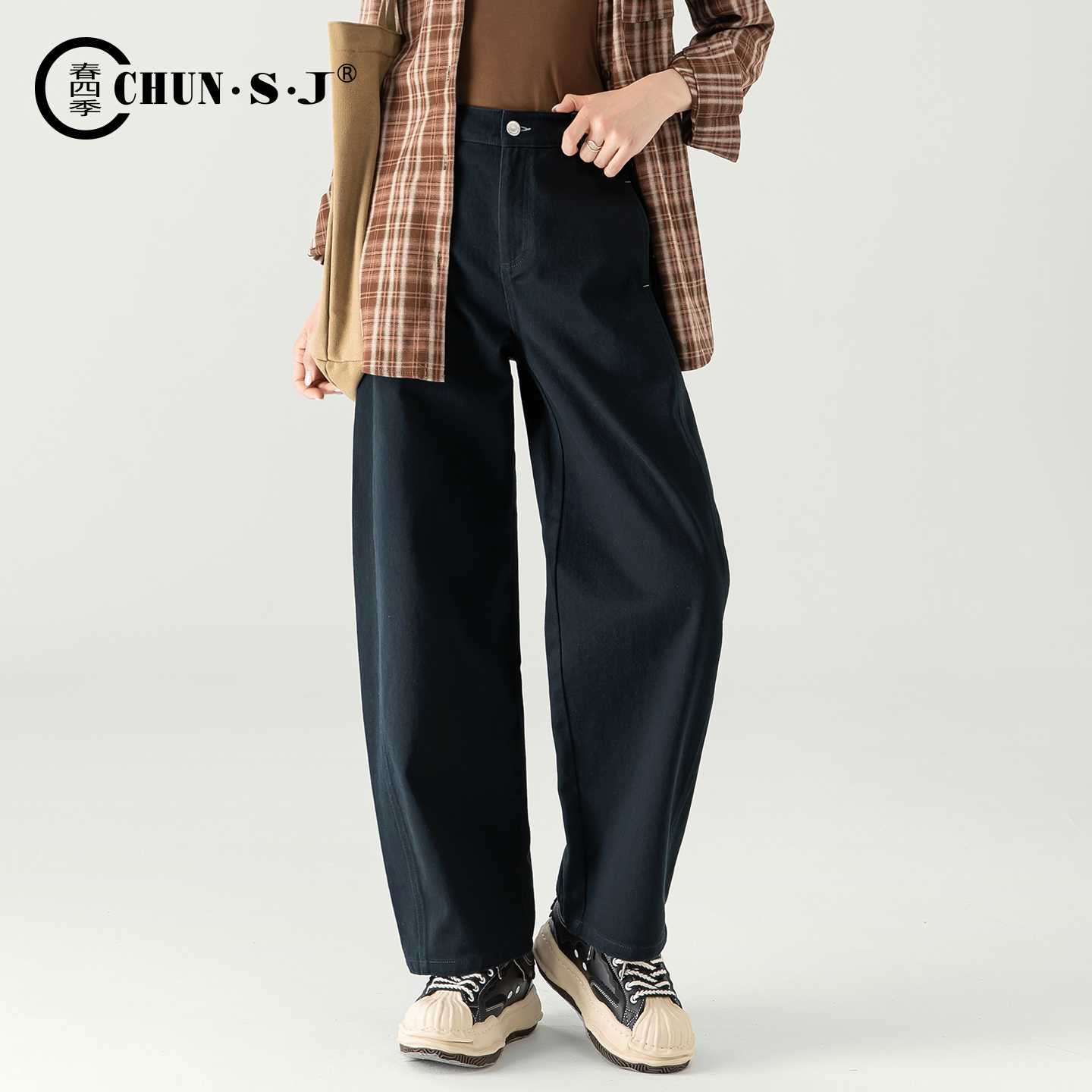 小个子九分裤 betu百图深蓝色宽松牛仔裤 新款 2025年秋季 女阔腿裤