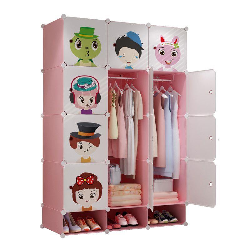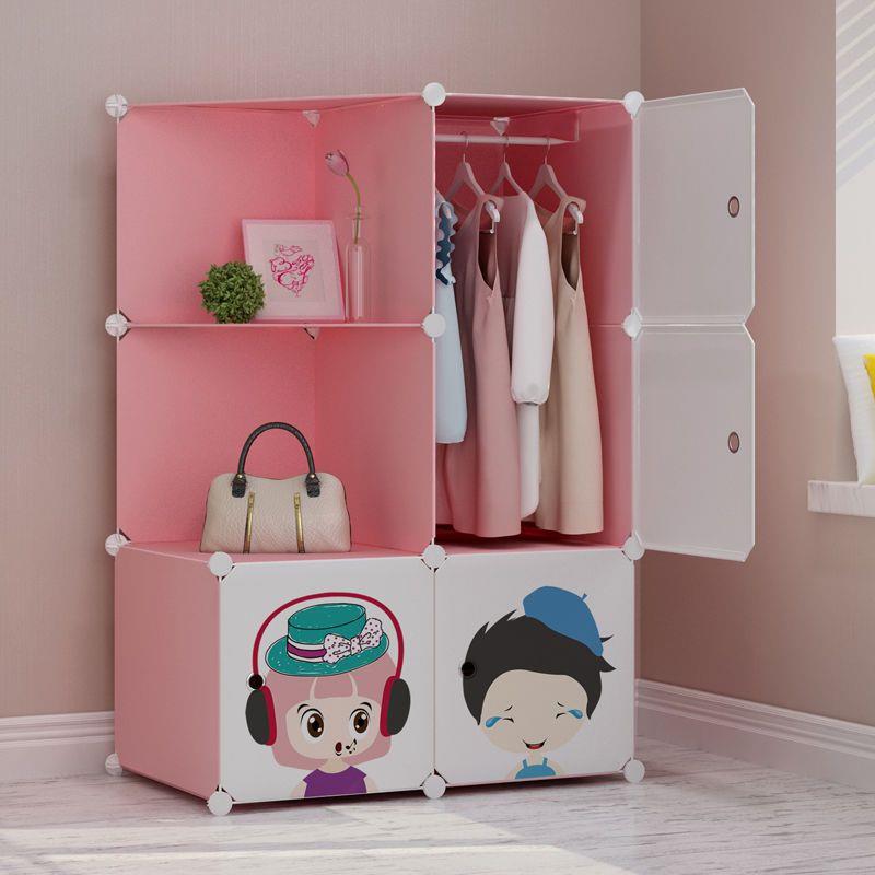 卡通拼装 收纳柜衣服专用衣柜 儿童衣柜可拆卸简易宝宝衣橱钢架组装