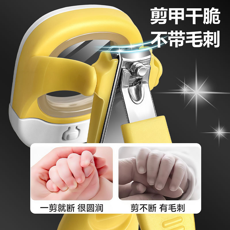 婴儿发光指甲钳儿童不锈钢指甲剪防飞溅指甲刀带放大镜带LED灯光
