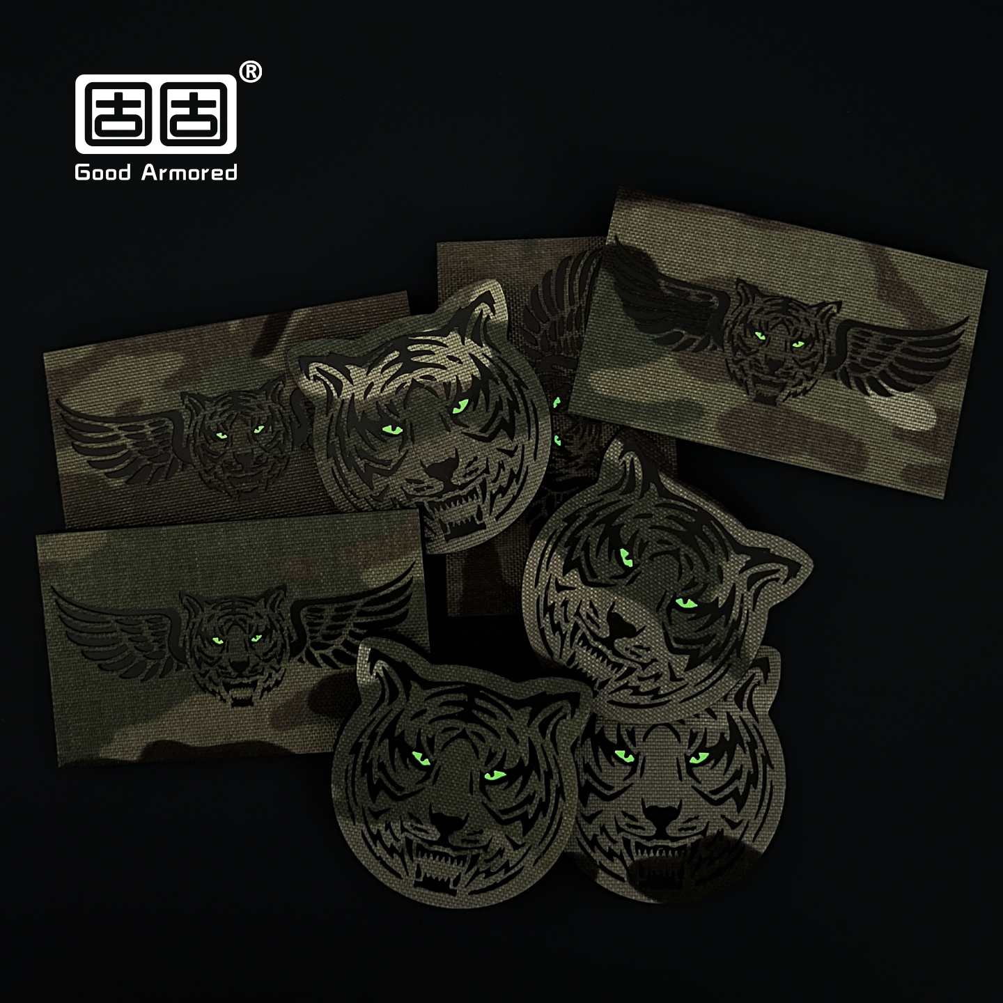固固 激光切割魔术贴臂章胸章老虎头士气贴夜间效果