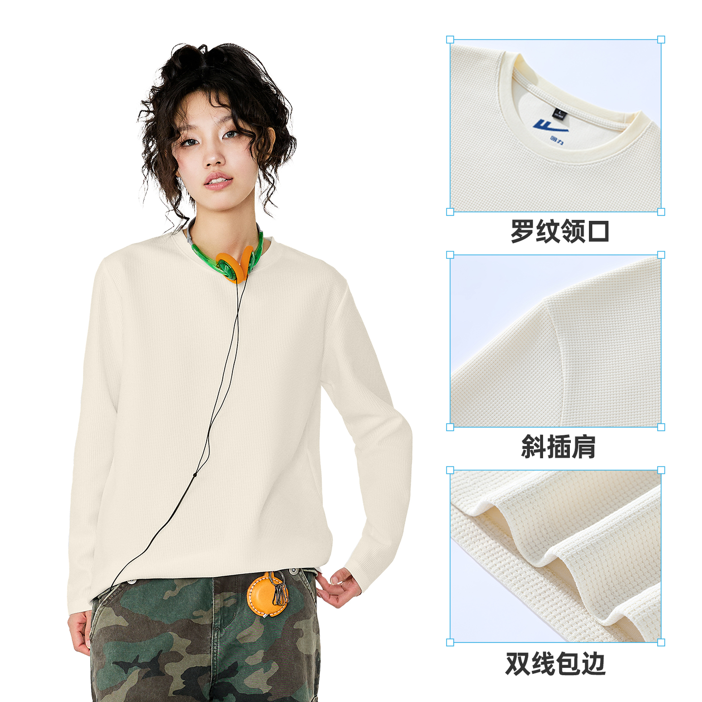 长袖 上衣简约套头衫 t恤2025新款 华夫格宽松大码 秋季 回力黑色男士