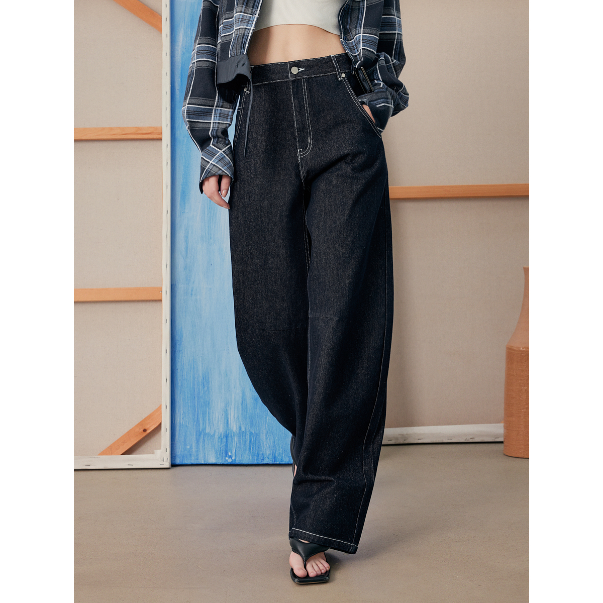 女2025新款 不易掉色裤 秋季 阔腿裤 宽松窄版 娅丽达丹宁蓝直筒牛仔裤