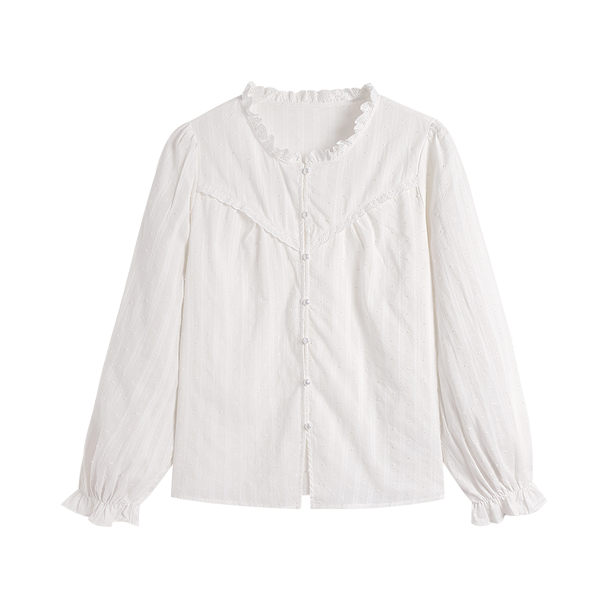 复古气质内搭叠穿衬衣小衫 女2025秋法式 衬衫 白色木耳花边立领长袖