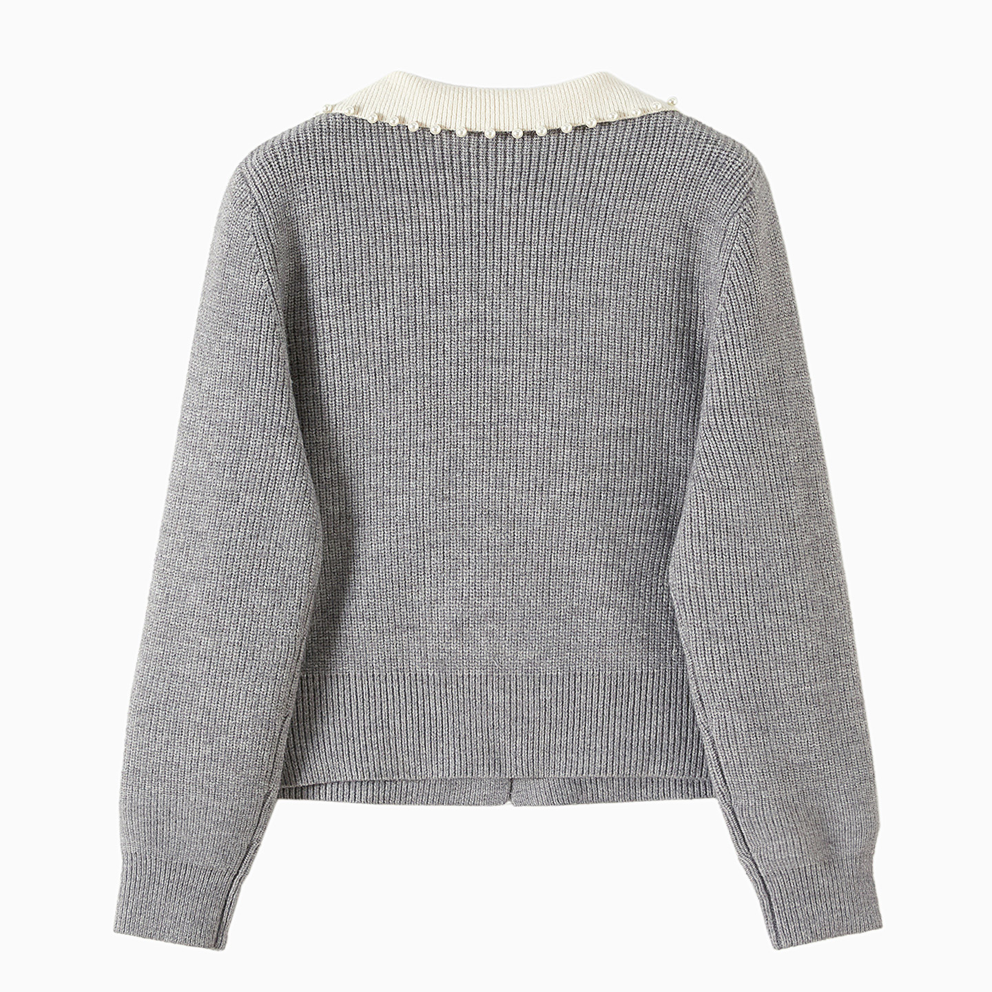 钉珠撞色拼接翻领修身 她池假两件针织衫 女装 新款 上衣 2025秋装