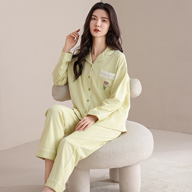 长裤 长袖 开衫 大码 上衣 纯棉睡衣女士春秋季 家居服套装 2025年新款