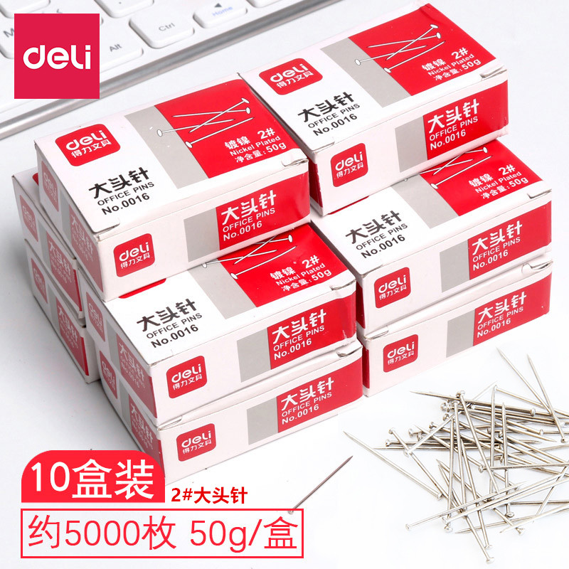 得力大头针小号不锈钢圆头针财务会计装 裁剪定型定位针直别针金属加厚电镀手工针标记针 订单据用固定针服装