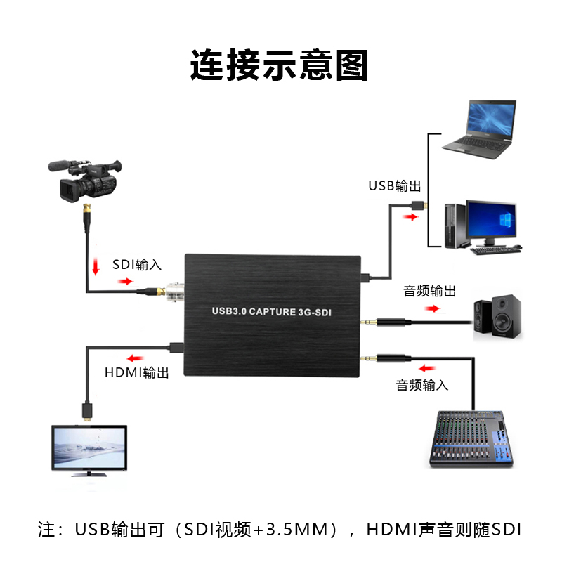 机电脑视频会议录制直播支持麦克风输入 SDI采集卡SDI转USB3.0HDMI转换器1080P兼容USB2.0接笔记本台式