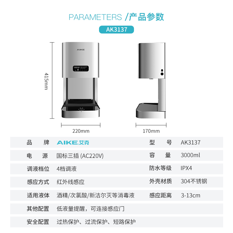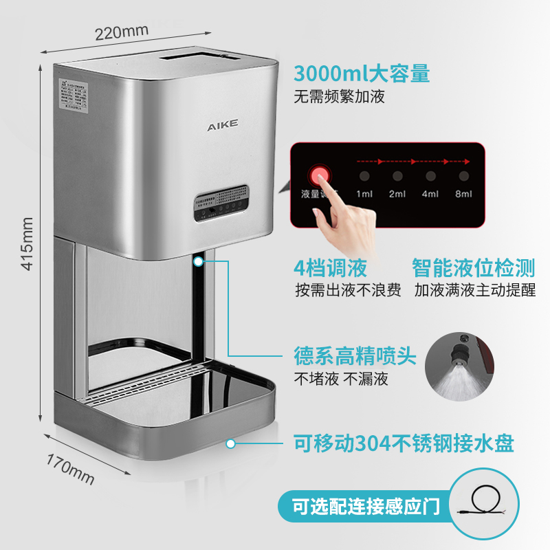 艾克自动感应酒精喷雾消毒器不锈钢大容量喷手器消毒液手部消毒机
