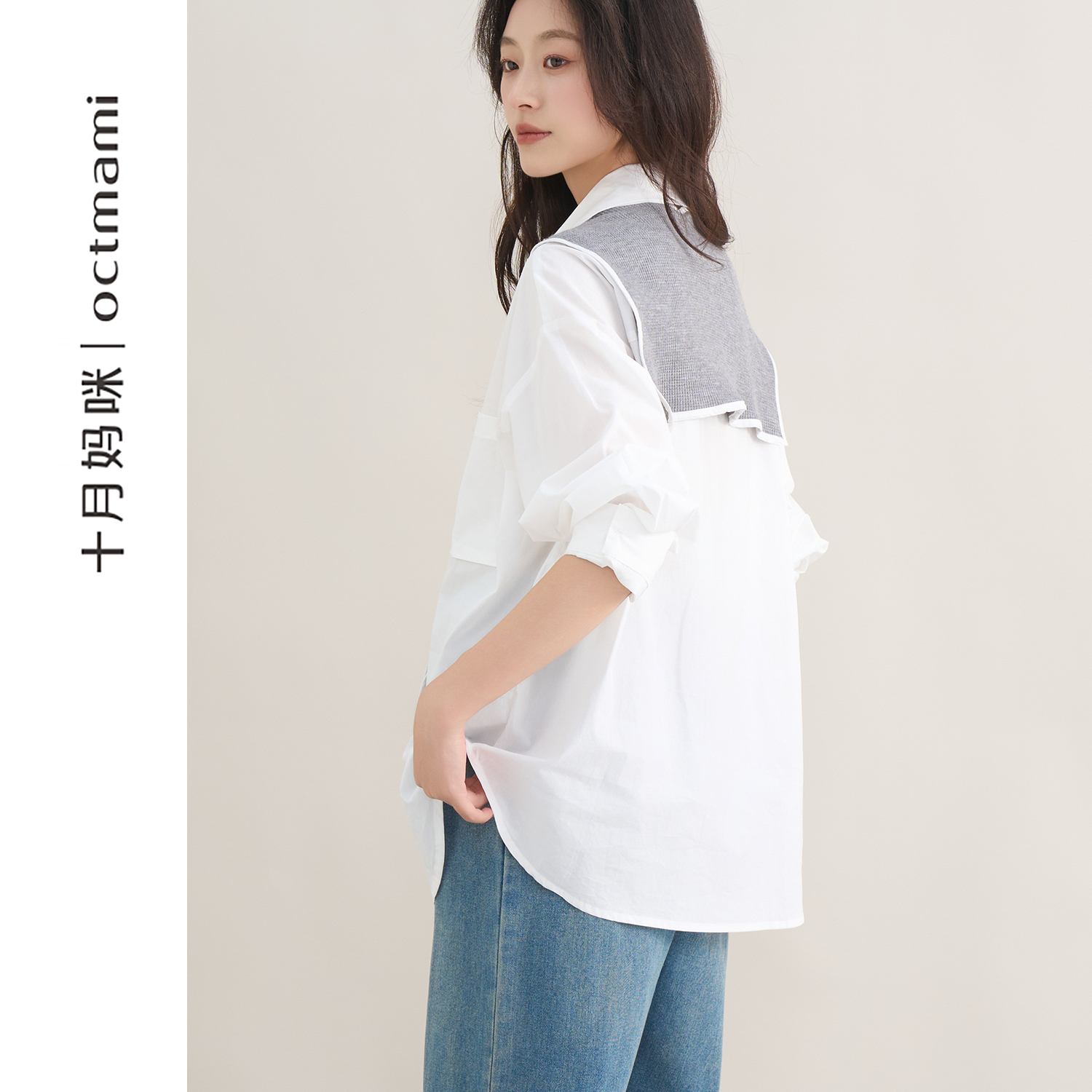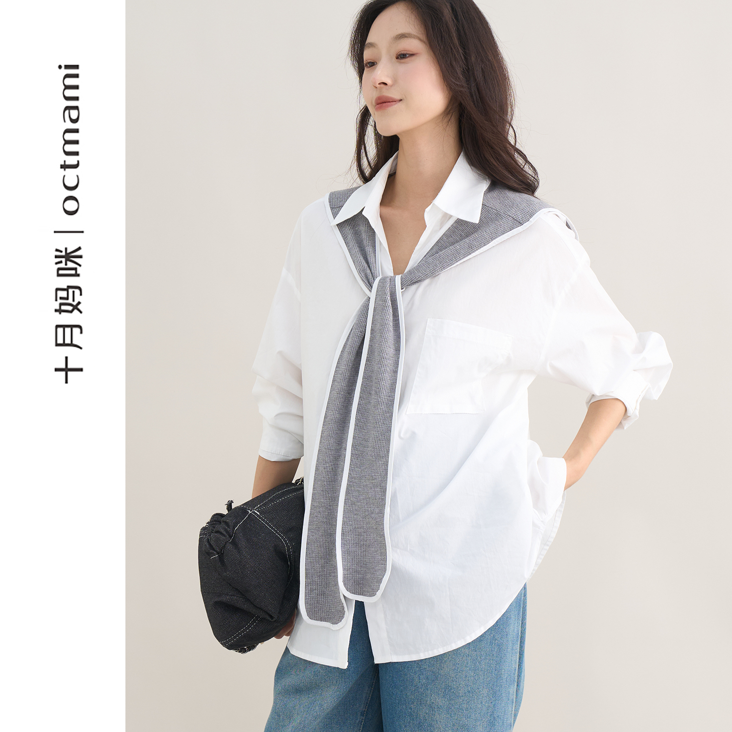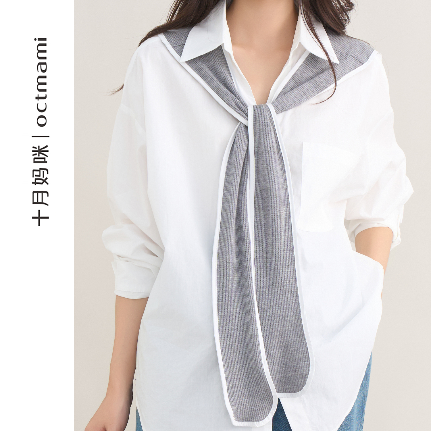 设计感针织拼接抽绳长袖 2025年新款 雪纺上衣 女秋装 假两件条纹衬衫