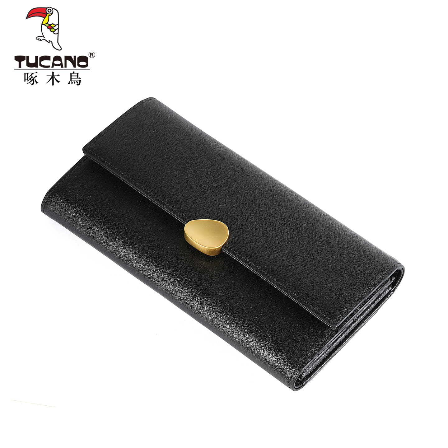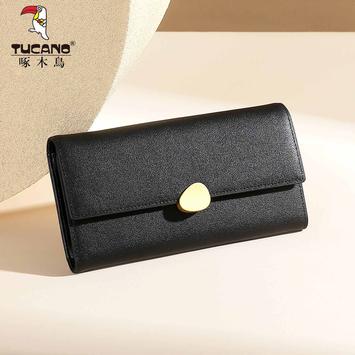 稻草人钱包女士新款 牛皮简约钱夹零钱包女生卡包 真皮小众钱夹女式