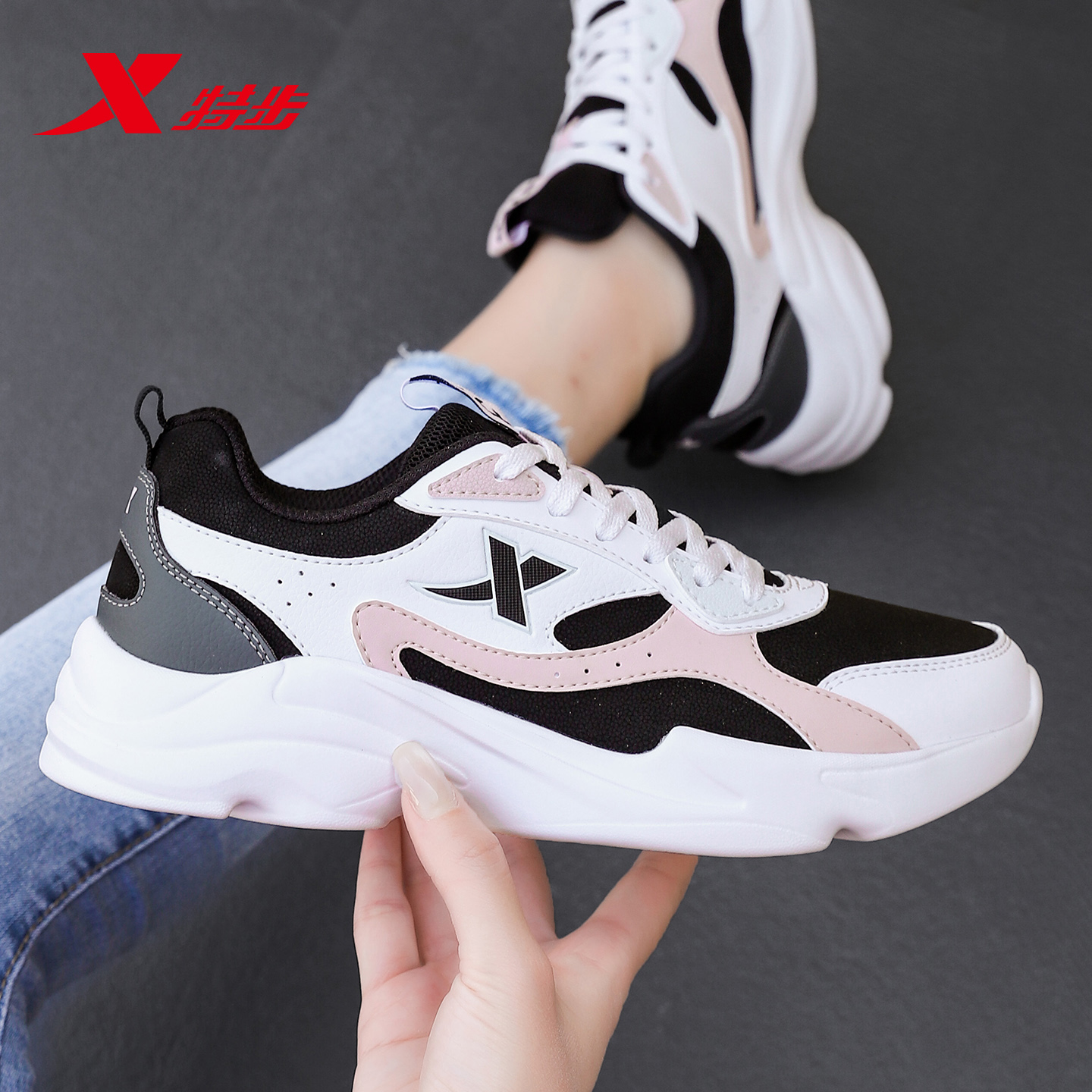 跑步鞋 官方旗舰轻便皮面运动鞋 2025新款 子休闲老爹鞋 女 鞋 特步女鞋