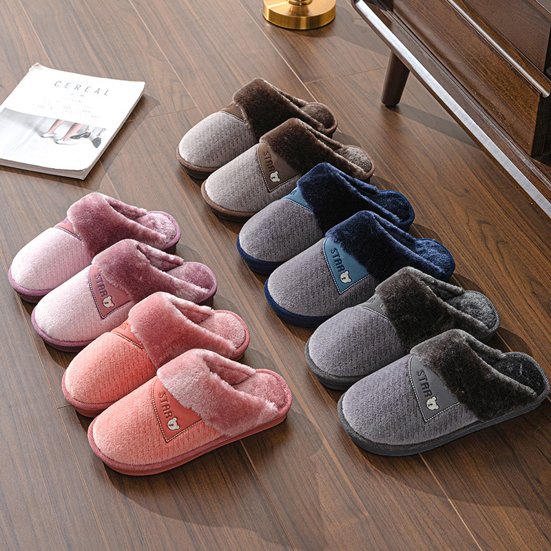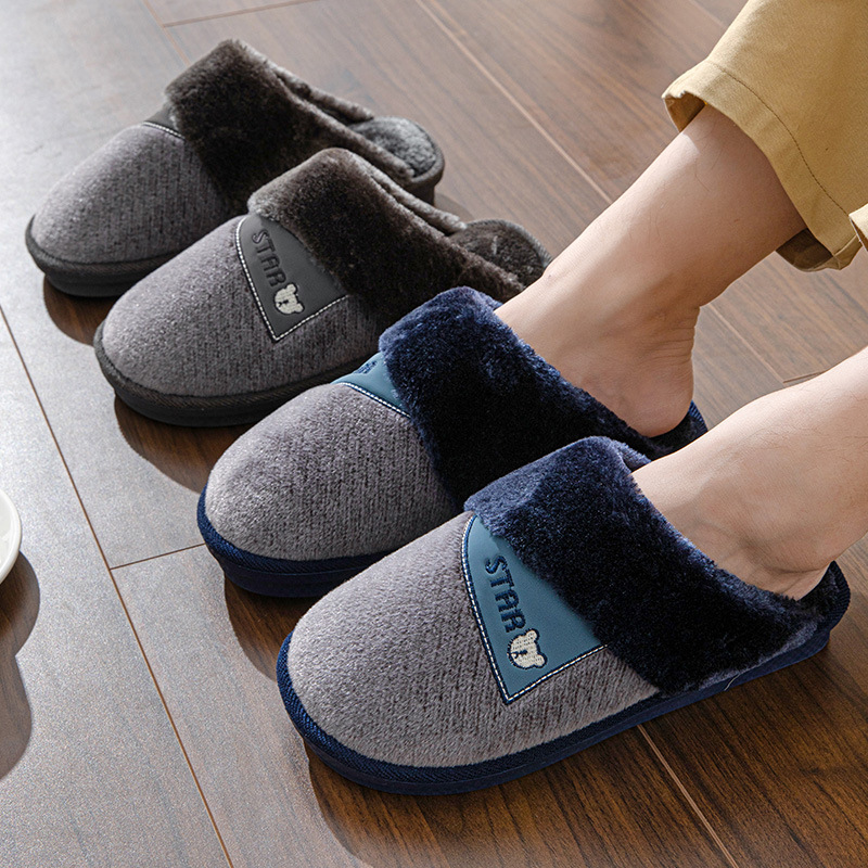 舒适新款 厚底家居家用防滑耐磨加绒保暖室外情侣拖鞋 棉拖鞋 男士