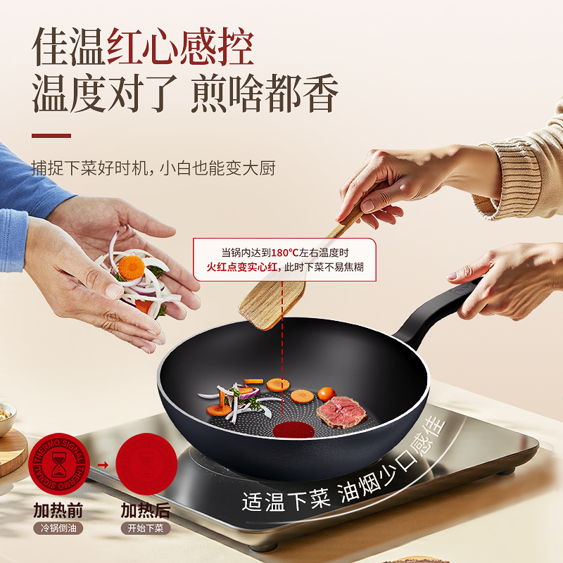 九阳不粘锅炒锅家用炒菜锅电磁炉专用燃气灶煤气灶适用锅具平底锅