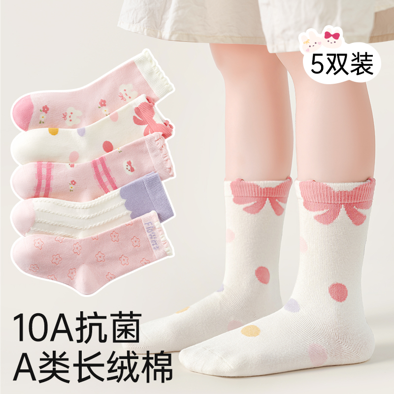 长筒童袜 儿童中筒袜花边无骨袜女宝宝秋季 女童袜子春秋款 2025新款