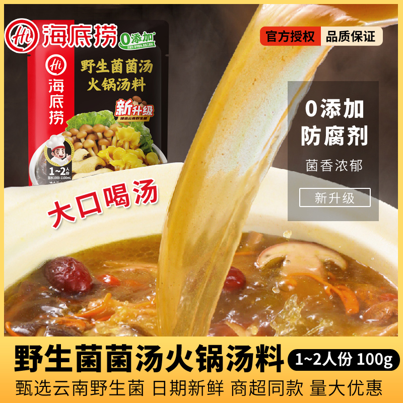 海底捞野生菌鲜菌汤火锅底料100g一人份小包装 不辣菌菇汤料麻辣烫