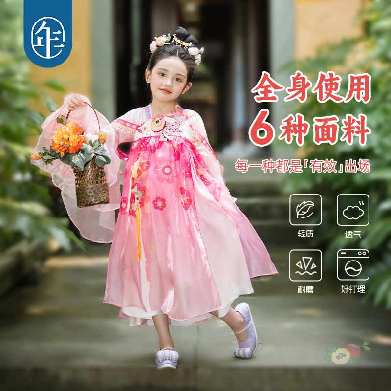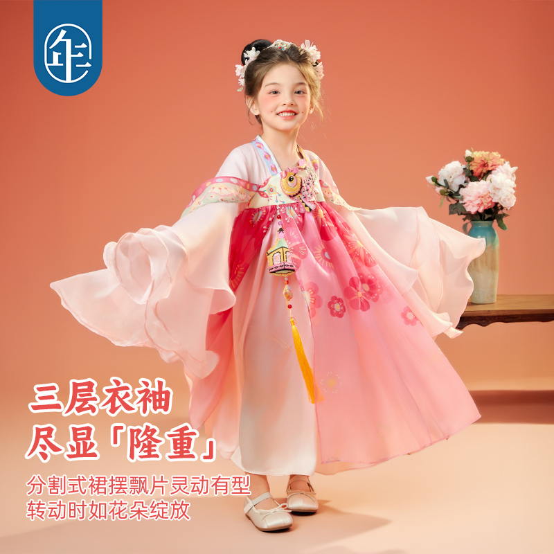 汉服裙女童秋季 古装 新款 中式 中秋节儿童礼服 重工改良唐装 年衣童装