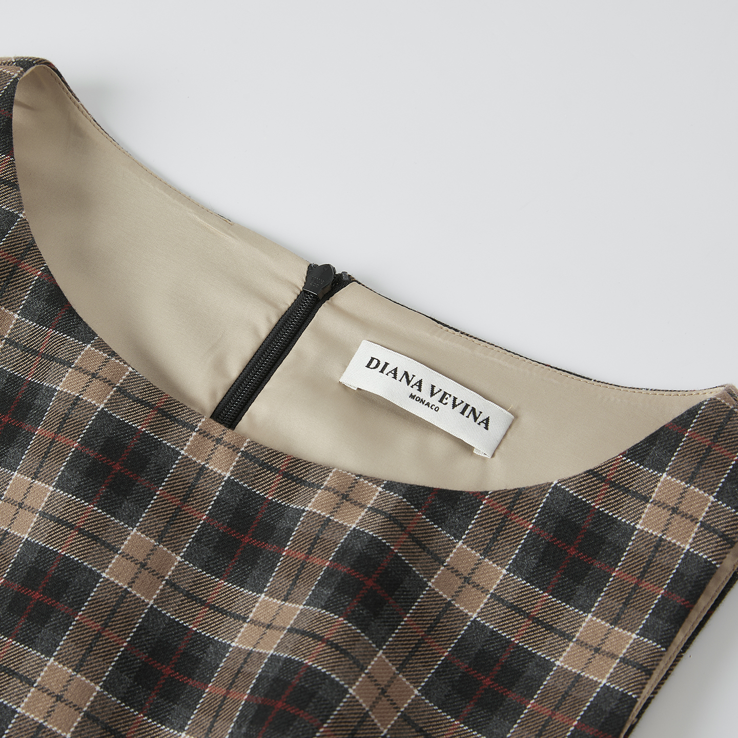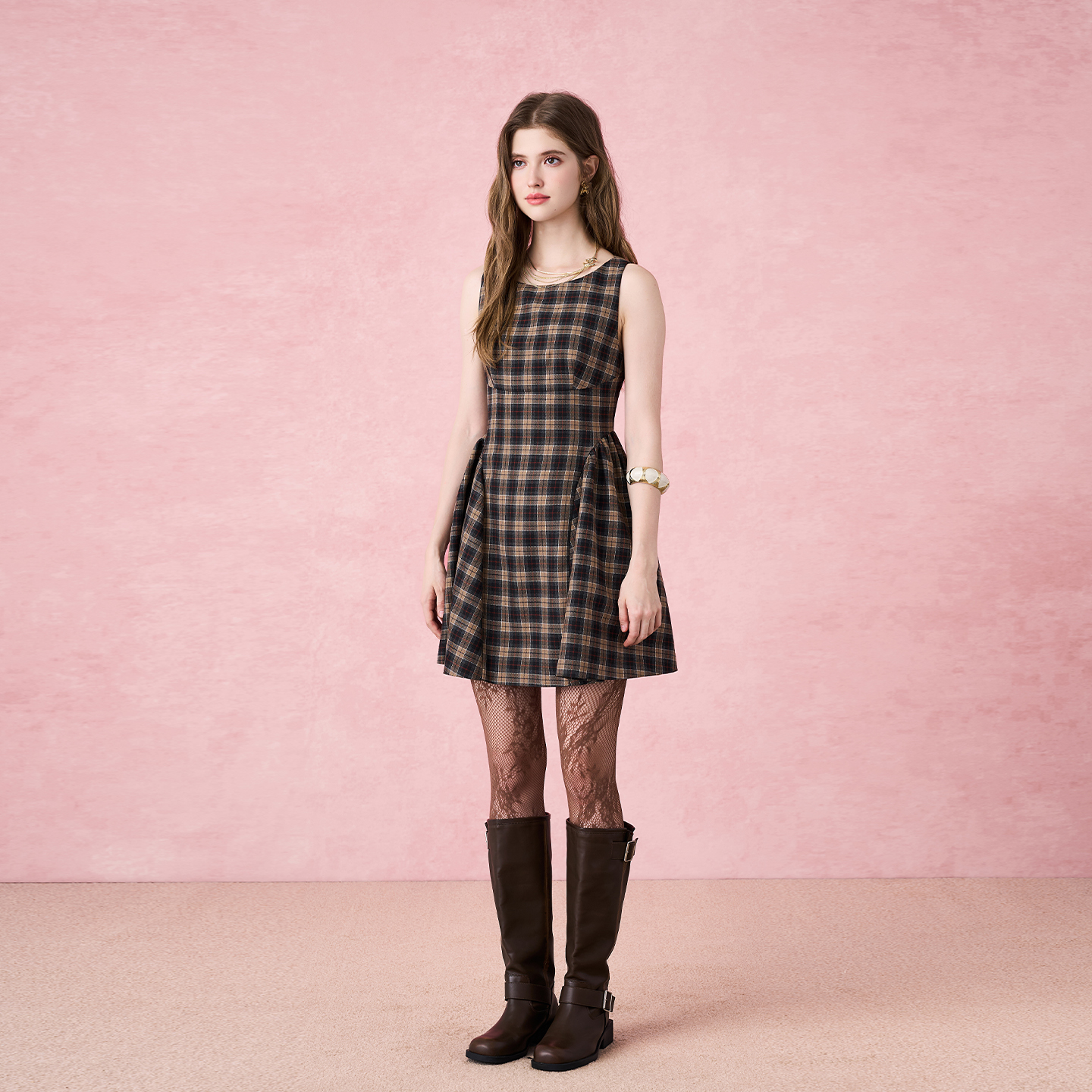 DIANAVEVINA2025秋冬新品 复古 格子背心连衣裙女收腰显瘦气质无袖