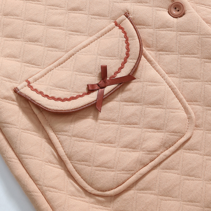 蝴蝶结翻领套装 外穿家居服秋季 长裤 芬腾薄夹棉睡衣女春秋纯棉长袖