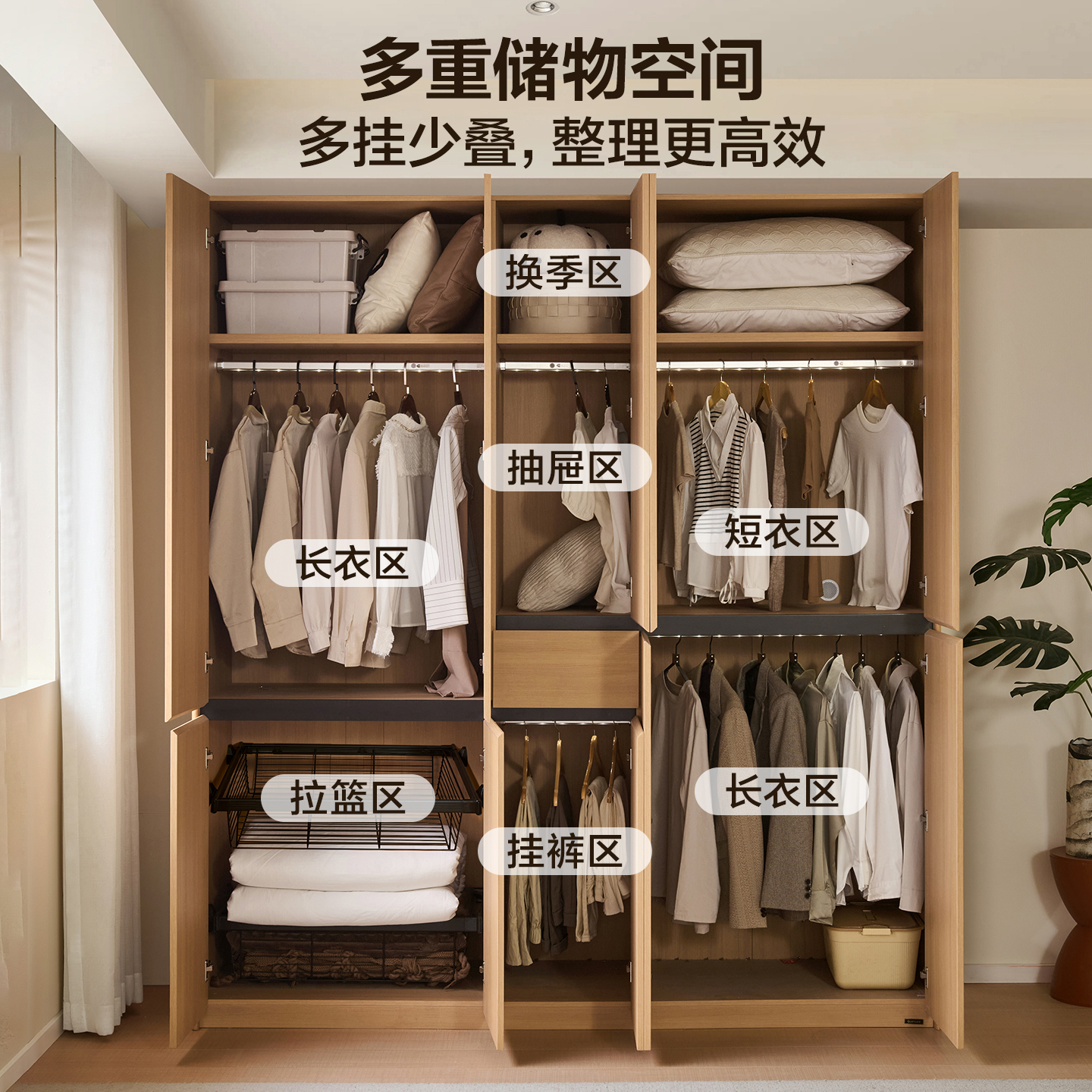 衣柜家用卧室实木轻奢现代风大容量收纳储物柜自由组合衣橱可定制