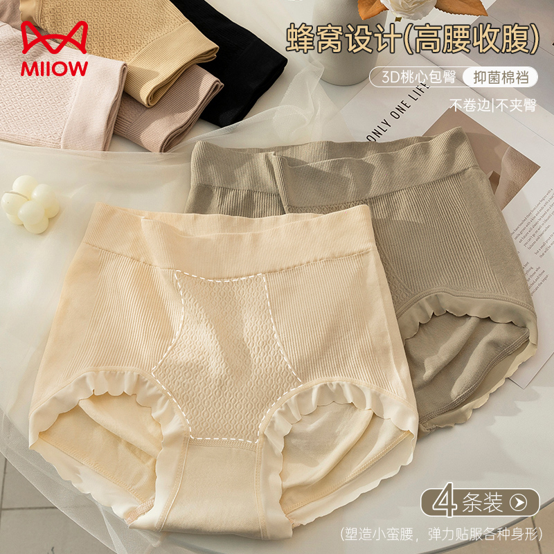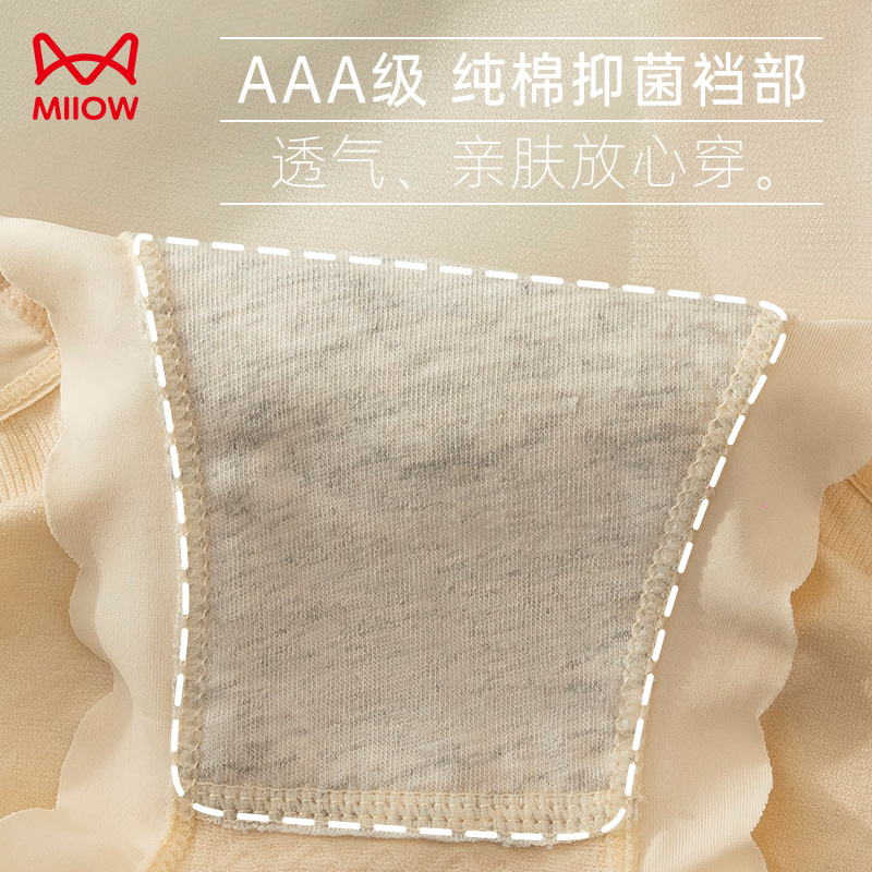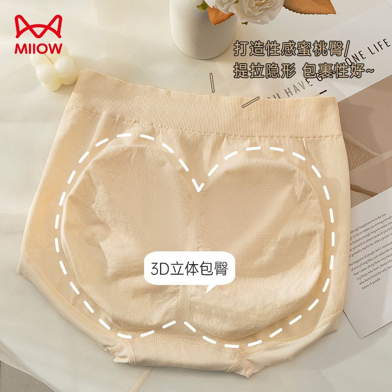 猫人女士内裤 高弹软糯无缝贴合提臀蜜桃臀全棉抗菌裆秋冬新短裤
