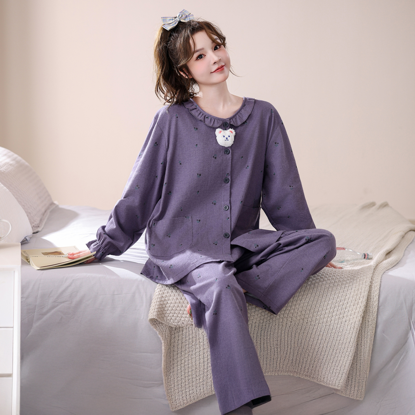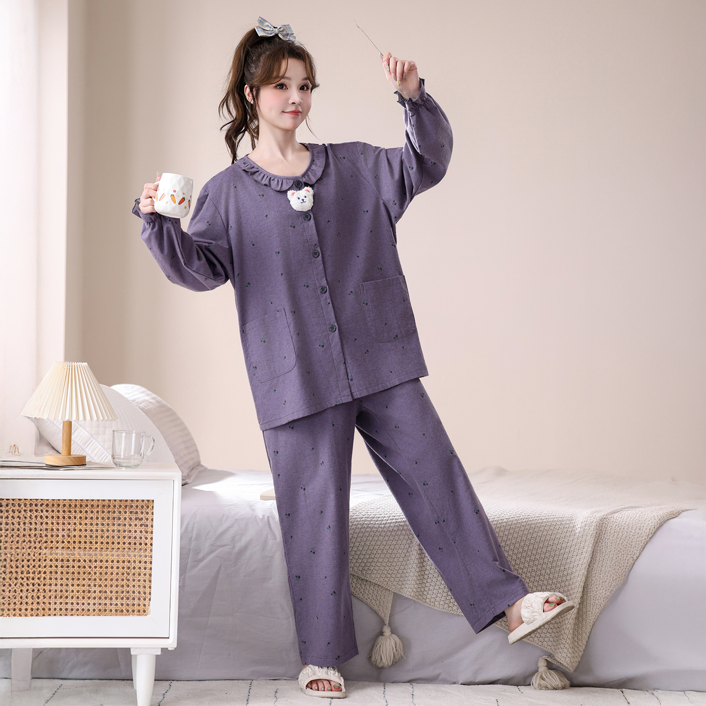 家居服 200斤胖妹妹秋冬季 胖mm大码 高级感睡衣女纯棉加厚磨毛大码