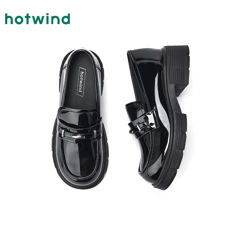 女款 通勤百搭女鞋 2025年秋季 厚底增高乐福鞋 子 新款 热风黑色小皮鞋