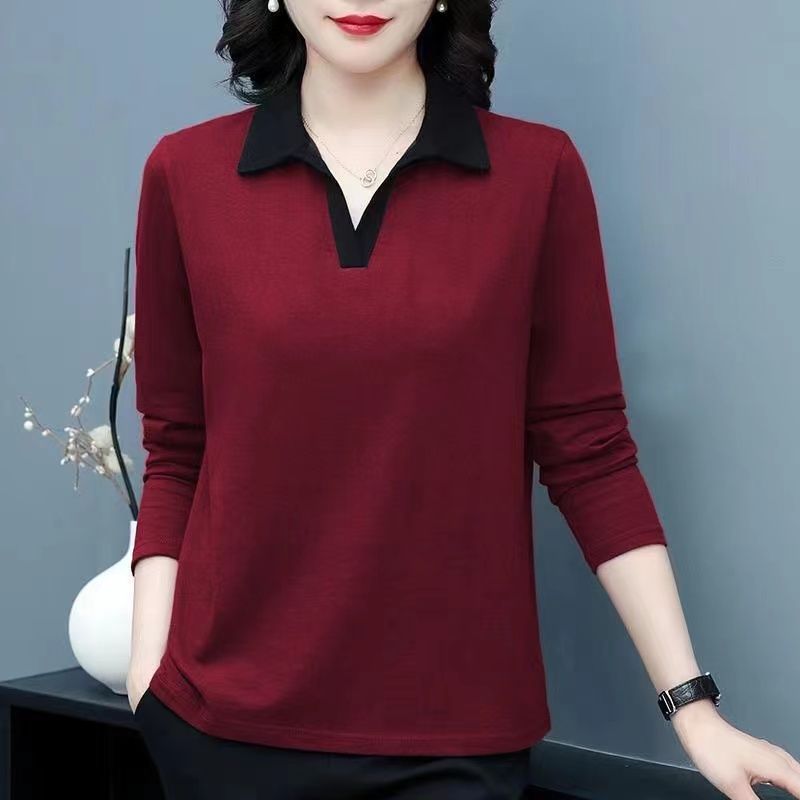 POLO打底衫 大码 t恤女新款 春秋中年妈妈减龄纯棉上衣翻领洋气长袖