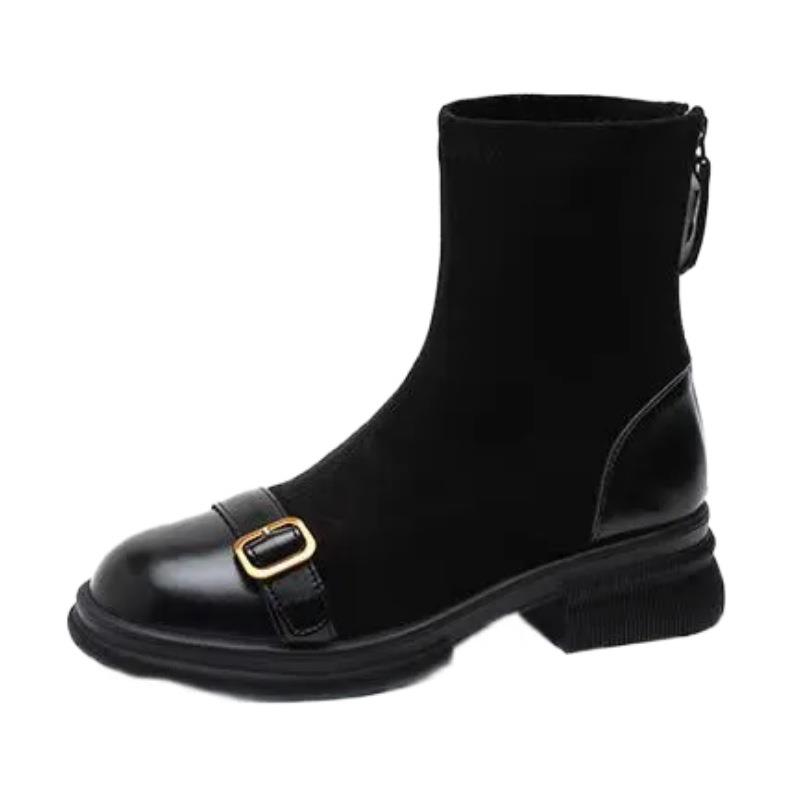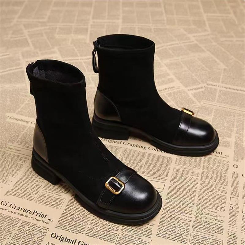 复古加绒短靴女切尔西靴2025秋冬新款 弹力瘦瘦靴袜靴棕色中筒靴子
