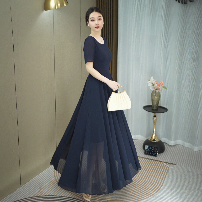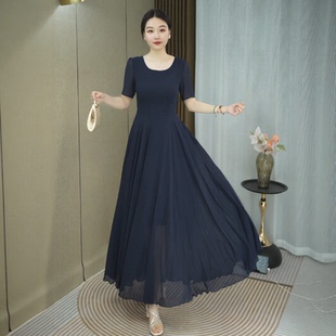 中长款 改良圆领长袖 连衣裙女 胖mm显瘦遮肚新中式 美丽客栈旗袍大码
