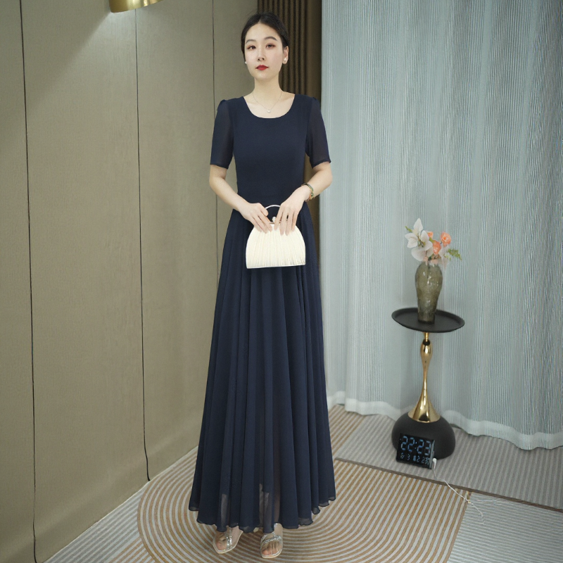 修身 HM女装 圆领无袖 新款 显瘦垂褶高领长裙1265321 连衣裙2025秋季