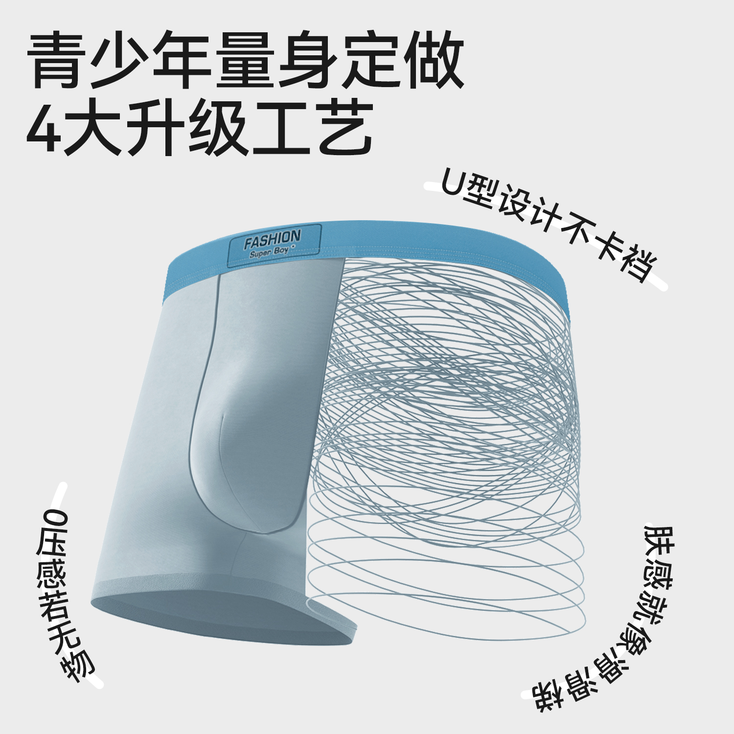青少年四角短裤 3件 纯棉透气裆新款 运动内裤 男生 蕉内银皮301S男士