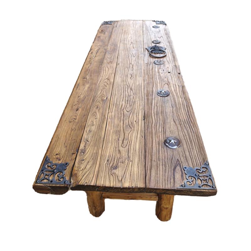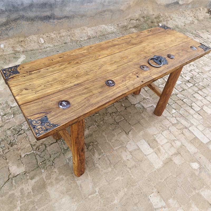 老榆木门板桌子复古怀旧吧台旧木板原木实木茶台茶桌子民俗定制