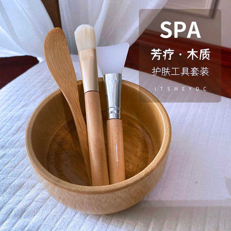 日式 面膜碗硅胶刷DIY家用美容院 木质竹木护肤工具套装