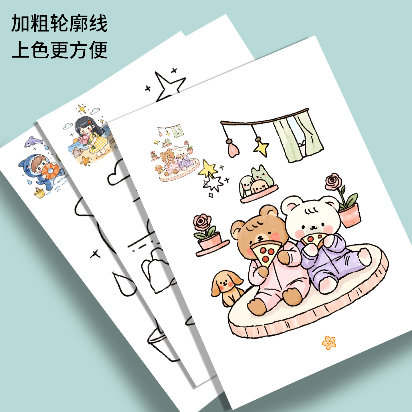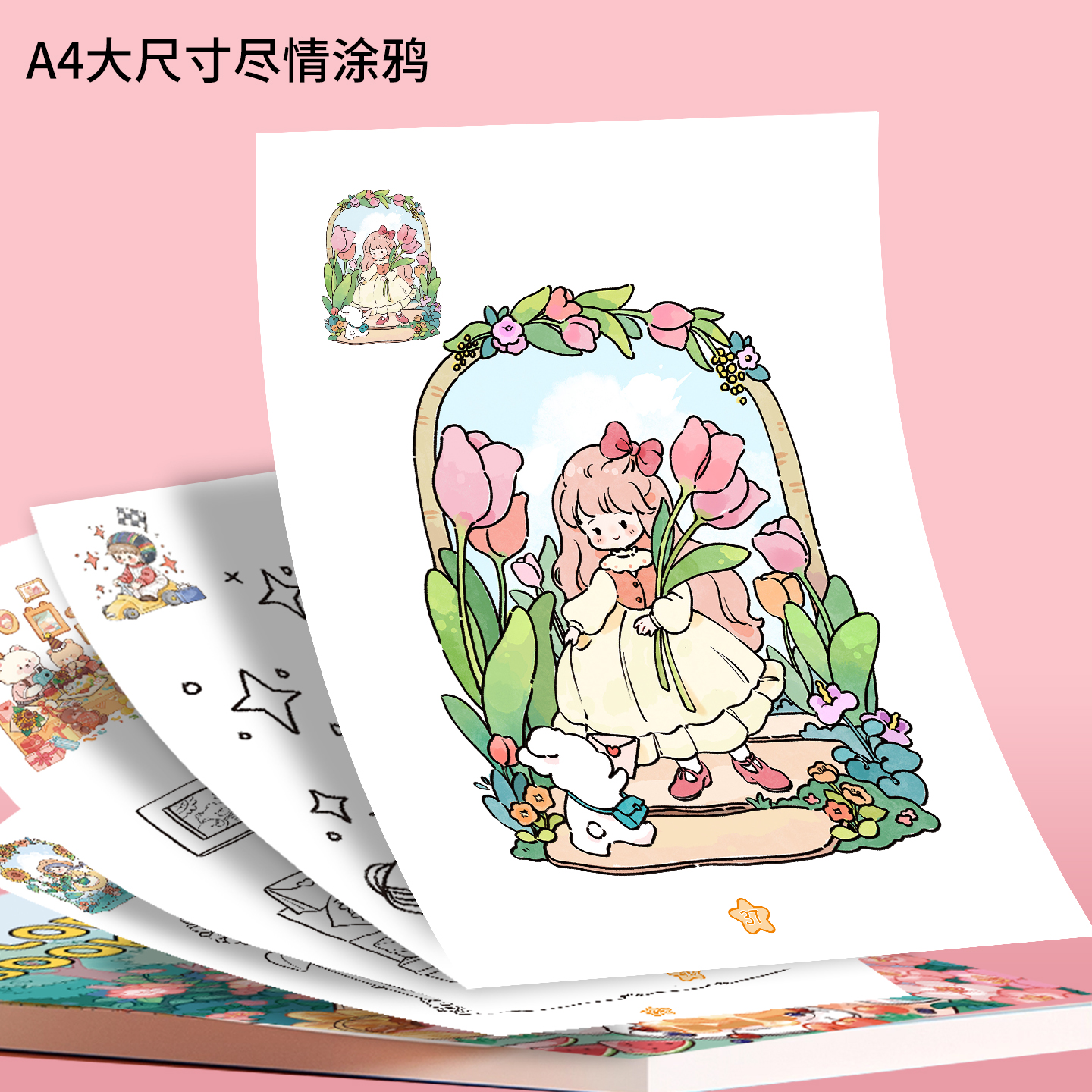 涂鸦涂色本缓解焦虑涂色本绘画填色本解压成人涂色本画画本治愈系