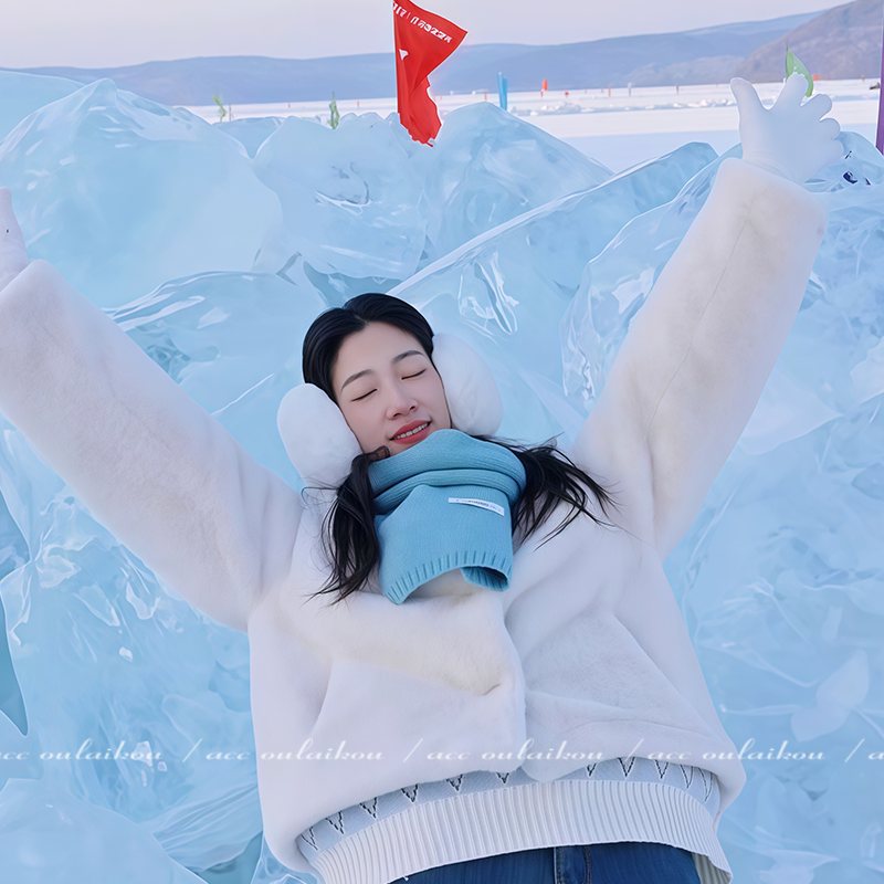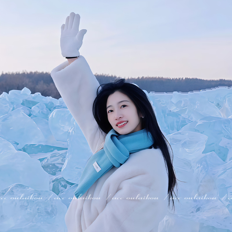 针织百搭韩系氛围 女蓝色高级感冬季 包配件拎环 羊毛围巾2025新款
