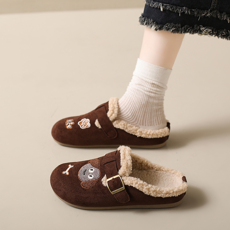 棕色孕妇包头毛毛棉鞋 加绒勃肯半拖鞋 女秋冬外穿防滑一脚蹬懒人鞋