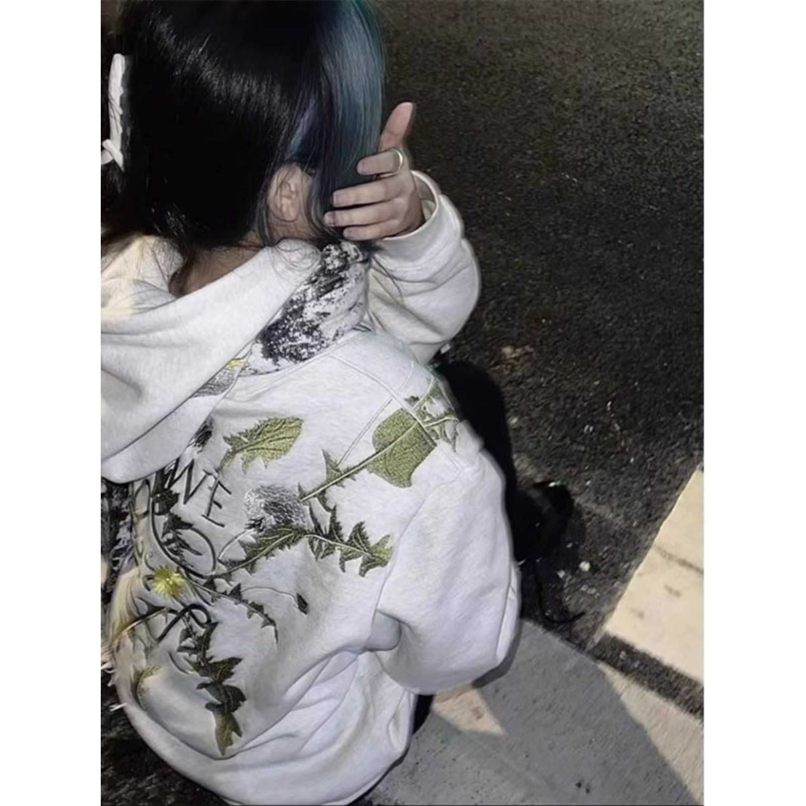 FORNINES刺绣国潮开衫 灰色卫衣男生秋冬情侣加绒加厚外套女连帽衫