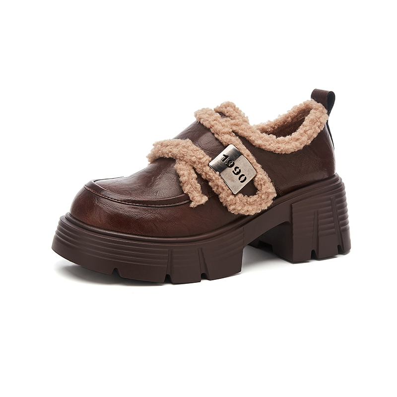 外穿平底复古软底勃肯大头一脚蹬棉鞋 秋冬季 女加绒乐福鞋 豆豆鞋 款