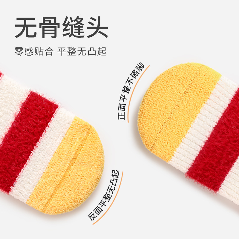新生儿红色袜子冬季 加厚加绒宝宝新年袜满月百天周岁婴幼儿中筒袜