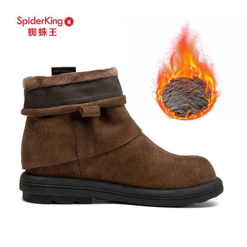 蜘蛛王勃肯短靴女2025年新款 靴子厚底加绒靴西部靴褶皱堆堆靴 冬季