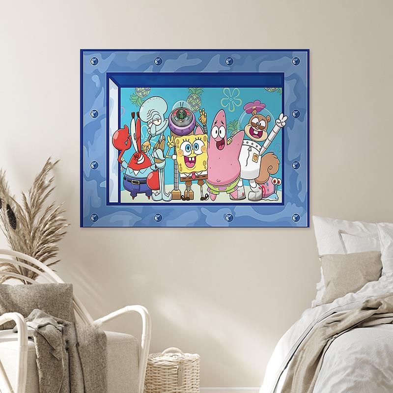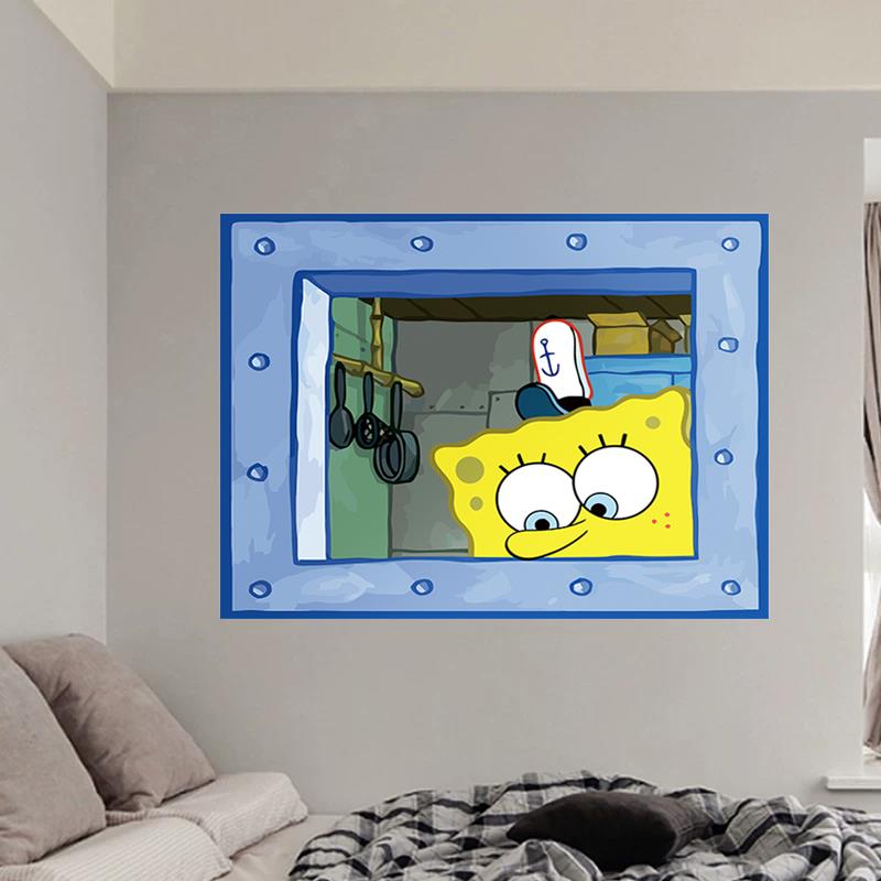 海绵宝宝墙贴宿舍卧室墙面壁纸派大星章鱼哥窗口装 画海报 饰贴画