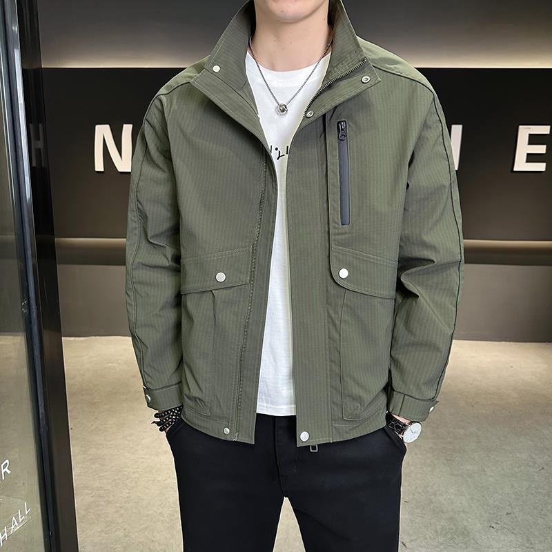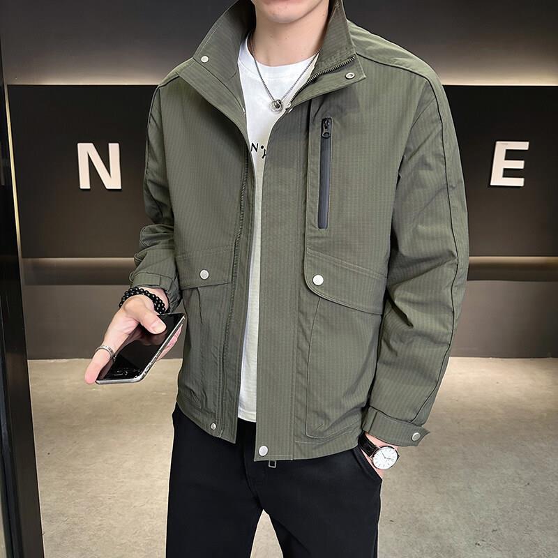 罗蒙牛奶丝夹克男士 商务休闲柔顺防风免烫抗皱翻领上衣外套 秋季