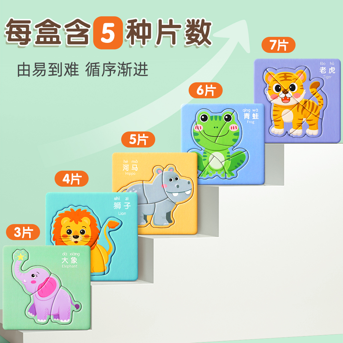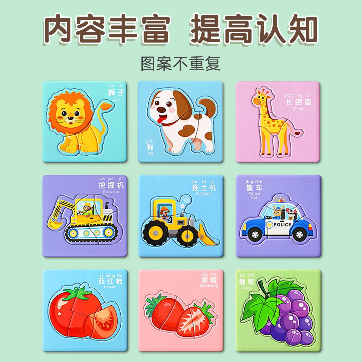 儿童动物拼图宝宝2到3岁益智幼儿1三两一0小孩早教女孩男孩玩具6
