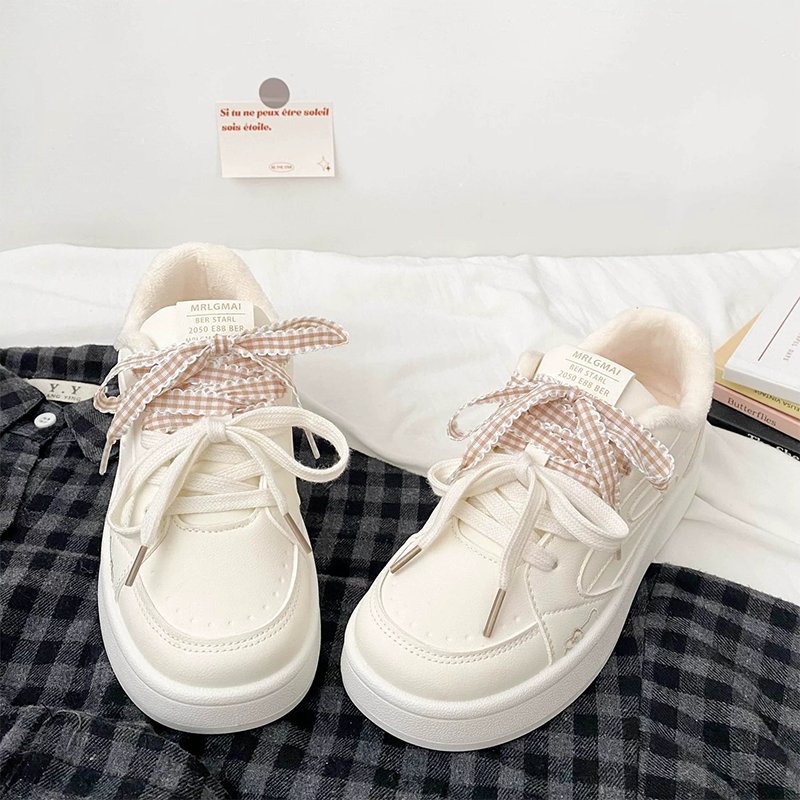 轻便休闲板鞋 女童二棉小白鞋 女孩厚底加绒可爱韩版 新款 2025秋冬季